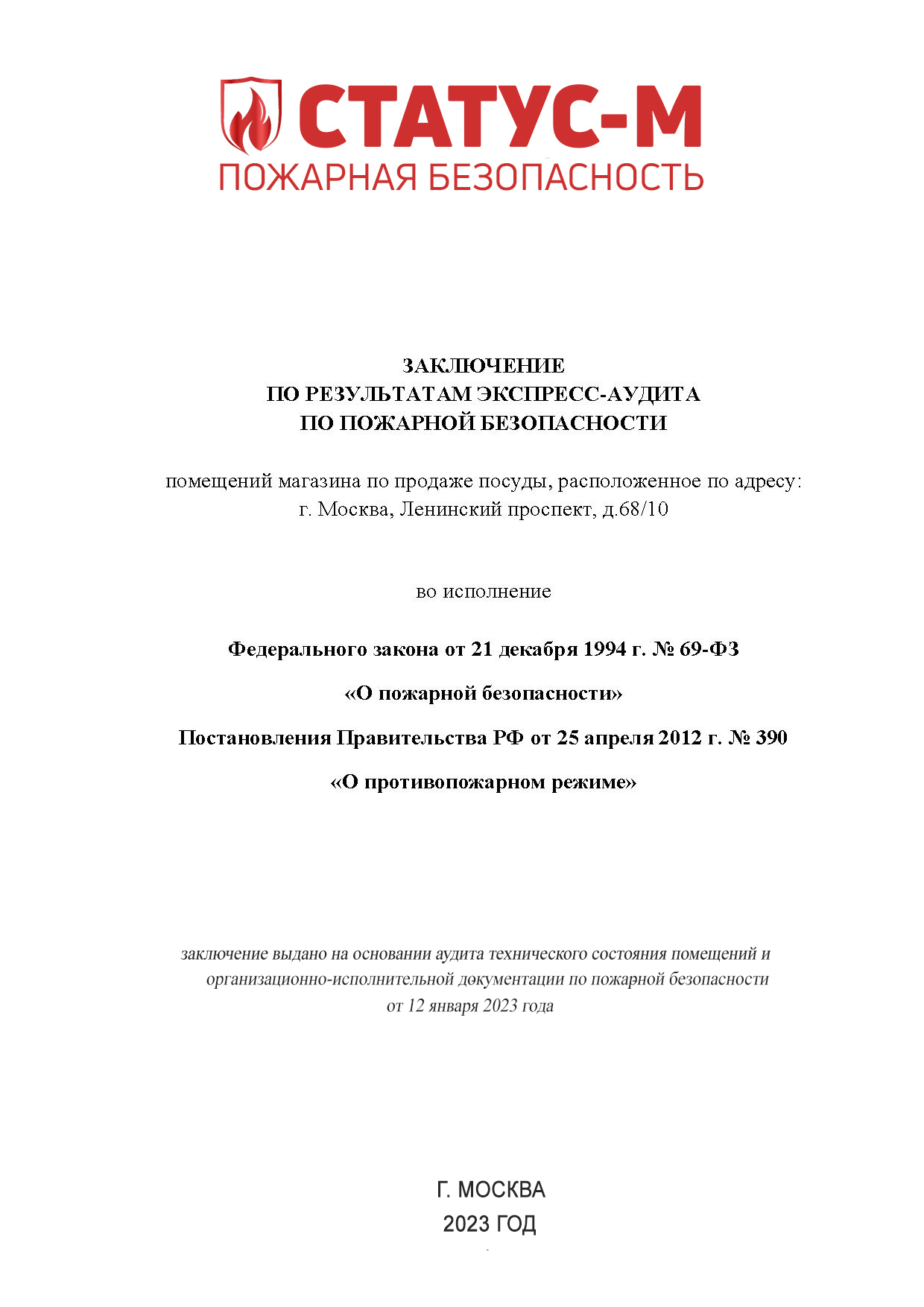 Компания СТАТУС-М — многопрофильная компания, которая с 2003 года ведёт свою деятельность по оказанию услуг в области пожарной безопасности.